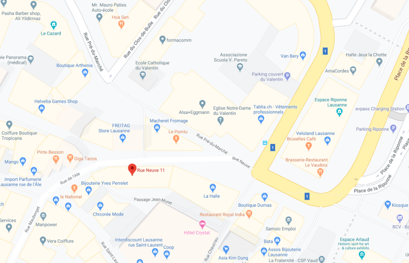 Adresse: Rue Neuve 11, Lausanne, 2ème étage.
